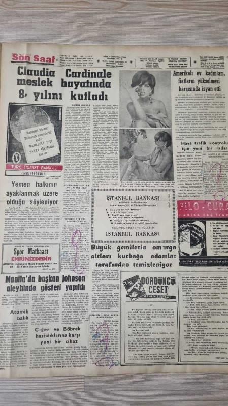 SON SAAT GAZETESİ -- 25 EKİM 1966 -- NALAN EGESAN ŞİMDİDE SOYUNMAM DİYE TUTTURDU -NEZAHAT TANYERİ HÜSEYİN KEMAL GÜRMEN -- SAİME BEKBAY , ORHAN ALKAN , MUZAFFER HEPGÜLER - NUHUN GEMİSİ , BİLKAY TEKBAN , MÜFİT KİPER , FUNDA POSTAER ÖZDEMİR HAN , CENGİZ KESKİNKILIÇ , SUPHİ TEKNİKER , BEDİA MUVAHHİT -- CLAUDİA CARDİNALE MESLEK HAYATINDA 8. YILINI KUTLADI -- YEMEN HALKININ AYAKLANMAK ÜZERE OLDUĞU BİLDİRİLDİ -- MANİLA DA BAŞKAN JOHNSON ALEYHİNDE GÖSTERİ YAPILDI - TURGAY ŞEREN DİVAN HEYETİNE ÇIKIYOR -- FENERBAHÇE ROMEN UTA İLE KARŞILAŞIYOR -- TARIK BİNAT , SANAYİCİLER BİRLİĞİ -- SUSUZ YAZIN ULVİ DOĞANI TEVFİK EDİLDİ -- DOLMABAHÇE SAHİLİNDE KADIN CESETİ BULUNDU -- LEBİT YURDOĞLU , DR. İBRAHİM ÖKTEM , BÜLENT ECEVİT -- BAŞKAN JOHNSON 'UN KALDIĞI OTEL ÖNÜNDE KANLI HADİSE -- DÜZCE CİNAYETİNİN FAİLLERİ BUGÜN ADLİYEDE ARANDI .. adlı eser, Kitap > Süreli Yayınlar > Gazeteler kategorisinde İkinci El olarak satıştadır.