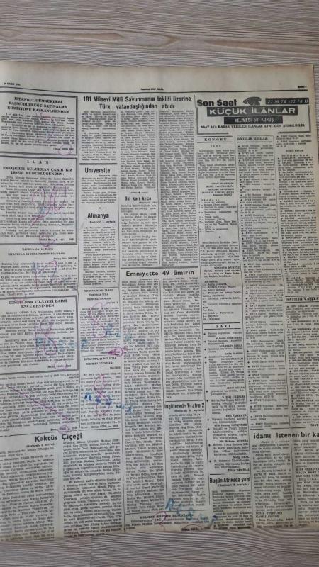 SON SAAT GAZETESİ -- 4 EKİM 1966 -- GAZANFER ÖZCAN VE GÖNÜL ÜLKÜ 'SÜLÜMAN BACANAK ' PROVASINDA ' E. KÖSEOĞLU , TEVFİK GELENBE , ZİYA KESKİNER , SELİM NAŞİT , ŞENİZ GÜZENDOR , ADİLE NAŞİT , GÜLER ALIŞ -- KÜÇÜK SAHNENİN YENİ KURUCUSU M. OFLUOĞLU -- İNGİLTERE DE TİYATRO ŞİRİN DEVRİM -- BEŞİKTAŞ İÇİN EN UZUN GÜN YARIN - K. AHMET , HAYATIMIN OUNUNU UYNYACAĞIM -- LOKOMATİV, GALATASARAY I 85-71 YENDİ VE ŞAMPİYON OLDU -- FAİK HOCA ANTRENÖR OLDU --ROGER VADİM VE JANE FONDA ÇOK MESUDUZ DİYOR -- TARIK BİNAT, ŞEHİR TİYATROLARI -- 181 MUSEVİ MİLLİ SAVUNMANIN TEKLİFİ ÜZERİNE TÜRK VATANDAŞLIĞINDAN ATILDI -- BEYAZ PERDENİN BÜYÜK ANNESİ MARLENE DİETRLEH -- adlı eser, Kitap > Süreli Yayınlar > Gazeteler kategorisinde İkinci El olarak satıştadır.