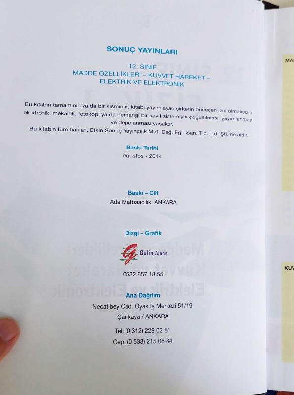 Kitap 2014 yılında SONUÇ YAYINLARI tarafından yayınlanmıştır. 102 sayfadır. SONUÇ YAYINLARI, 12. SINIF FİZİK - I (MADDE VE ÖZELLİKLERİ, KUVVET VE HAREKET, ELEKTRİK VE ELEKTRONİK) adlı eser Türkçe dilindedir.