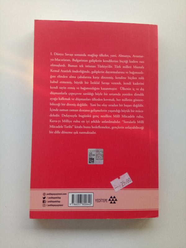 SORULARLA MİLLİ MÜCADELE TARİHİ (2. EL), EMEL ENGİN, VAHDETTİN ENGİN tarafından kaleme alınmıştır. Eser SAHURE ERGÜZEL editörlüğünde hazırlanmıştır. Kitap 2019 yılında YEDİTEPE YAYINEVİ YAYINLARI tarafından [ İSTANBUL] 978-605-7800-64-0 ISBN kodu ile yayınlanmıştır. Satışta olan kitap, yayınevinin 1. baskısıdır. 232 sayfadır. Sayfa bilgisi 2. HAMUR olarak belirtilmiştir. SORULARLA MİLLİ MÜCADELE TARİHİ (2. EL) adlı eser Türkçe dilindedir.