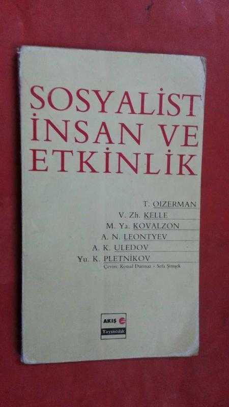 SOSYALİST İNSAN VE ETKİNLİK, T. Oizerman- V. Zh Kelle- M.Ya Kovalzon tarafından kaleme alınmıştır. Kitap 1988 yılında Akış Yayıncılık tarafından yayınlanmıştır. Bu baskının çevirisi Kemal Durmaz, Sefa Şimşek tarafından yapılmıştır. 131 sayfadır. SOSYALİST İNSAN VE ETKİNLİK adlı eser Türkçe dilindedir.