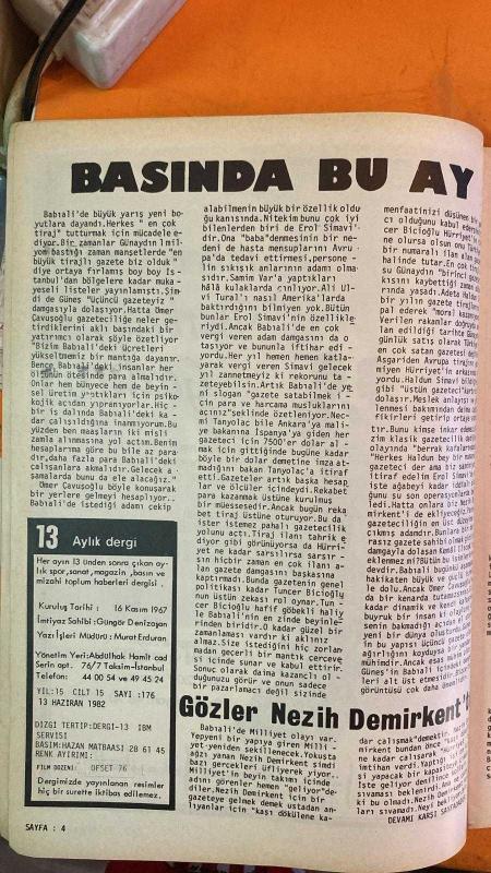 SOSYETE 13 DERGİSİ - 13 HAZİRAN 1982 KERİM KERİMOL – NİHAT KANER – MUSTAFA ÖZKAN – NÜKHET DURU – MÜŞERREF TEZCAN – NEZİH DEMİRKENT – EROL SİMAVİ – UMER ÇAVUŞOĞLU – BEDRİ KORAMAN – NECATİ DOĞRU – GÜNERİ CİVAOĞLU – İLHAN SELÇUK – HASAN CEMAL – NADİR NADİ – MEHMET KARAMEHMET – NAZLI ILICAK – HALDUN SİMAVİ – KEMAL ILICAK – SAMİM VAR – ALİ ULVİ TURAL – NECMİ TANYOLAÇ KERİM KERİMOL VE NİHAT KANER’İN İDDİALI DOSYASI – MUSTAFA ÖZKAN, NÜKHET DURU VE MÜŞERREF TEZCAN’IN SANAT GÜNDEMİ – NEZİH DEMİRKENT’İN BABIALİ’YE DÖNÜŞÜ VE GAZETECİLİKTEKİ AŞKI – UMER ÇAVUŞOĞLU’NUN YENİ PATRON MODELİ VE ORTANIN SOLUNDA KİTLE MUHALEFETİ VURGUSU – EROL SİMAVİ’NİN GAZETEDEKİ İÇKİ SALONU VE DUYGUSAL YÖNETİM TARZI – CUMHURİYET GAZETESİNDE GENÇLEŞME VE OFSET BASKI DÖNEMİ – NADİR NADİ VE HASAN CEMAL’İN YENİLENME STRATEJİLERİ – ÇUKUROVA’NIN YENİ GAZETE HAMLESİ VE AKŞAM’IN EL DEĞİŞİMİ – BABIALİ’DE TİRAJ YARIŞI, GÜNEŞ’İN ÜÇÜNCÜLÜK İDDİASI – UMER ÇAVUŞOĞLU’NUN MAAŞ POLİTİKASI VE GAZETECİLİKTE YIPRANMA TARTIŞM - 22 SAYFA adlı eser Türkçe dilindedir.