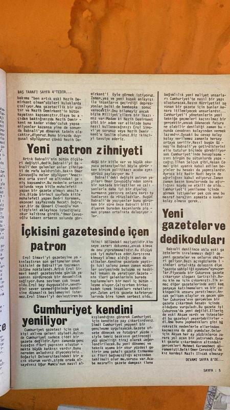 SOSYETE 13 DERGİSİ - 13 HAZİRAN 1982 KERİM KERİMOL – NİHAT KANER – MUSTAFA ÖZKAN – NÜKHET DURU – MÜŞERREF TEZCAN – NEZİH DEMİRKENT – EROL SİMAVİ – UMER ÇAVUŞOĞLU – BEDRİ KORAMAN – NECATİ DOĞRU – GÜNERİ CİVAOĞLU – İLHAN SELÇUK – HASAN CEMAL – NADİR NADİ – MEHMET KARAMEHMET – NAZLI ILICAK – HALDUN SİMAVİ – KEMAL ILICAK – SAMİM VAR – ALİ ULVİ TURAL – NECMİ TANYOLAÇ KERİM KERİMOL VE NİHAT KANER’İN İDDİALI DOSYASI – MUSTAFA ÖZKAN, NÜKHET DURU VE MÜŞERREF TEZCAN’IN SANAT GÜNDEMİ – NEZİH DEMİRKENT’İN BABIALİ’YE DÖNÜŞÜ VE GAZETECİLİKTEKİ AŞKI – UMER ÇAVUŞOĞLU’NUN YENİ PATRON MODELİ VE ORTANIN SOLUNDA KİTLE MUHALEFETİ VURGUSU – EROL SİMAVİ’NİN GAZETEDEKİ İÇKİ SALONU VE DUYGUSAL YÖNETİM TARZI – CUMHURİYET GAZETESİNDE GENÇLEŞME VE OFSET BASKI DÖNEMİ – NADİR NADİ VE HASAN CEMAL’İN YENİLENME STRATEJİLERİ – ÇUKUROVA’NIN YENİ GAZETE HAMLESİ VE AKŞAM’IN EL DEĞİŞİMİ – BABIALİ’DE TİRAJ YARIŞI, GÜNEŞ’İN ÜÇÜNCÜLÜK İDDİASI – UMER ÇAVUŞOĞLU’NUN MAAŞ POLİTİKASI VE GAZETECİLİKTE YIPRANMA TARTIŞM - 22 SAYFA adlı eser, Kitap > Süreli Yayınlar > Dergiler > Sanat > Sinema, Radyo, TV kategorisinde İkinci El olarak satıştadır.
