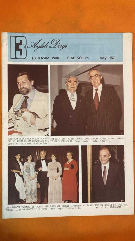 SOSYETE 13 DERGİSİ - SAYI: 157 - 13-KASIM-1980 - NAMIK KEMAL ŞENTÜRK - NEVZAT AYAZ - FERİT VOLKAN - YOKSEL HANIM - NURSELİ - YASEMİN ÇELİK - GOLERSOY - HASAN PULUR - OKTAY EKŞİ - NECATİ ZİNCİRKIRAN - ERGUN KÖKNAR - SUNA PEKUYSAL - NEZİH DEMİRKENT - LİM BAYAR - HIRSIZ SEMAI - BERÇ DUMAN - EŞFAK AYKAÇ - RIDVAN YELEKÇİ - ERDOĞAN ARIPINAR - AYDIN ÖZTÜRK - KEMAL ILICAK - MEHMET ÜSTÜNKAYA - GAZİ AKINAL - KUMRULUOĞLU - SPAJİÇ - ARDA VURAL - KARADENİZ - ATİLLA KARSAN - AĞCA - İSMAİL HAKKI AKANSEL - HALİÇ - GALATA - TOPHANE - KOCA SİNAN - PIERRE LOTI - BEŞİKTAŞ - FENERBAHÇE - ATATÜRK KÜLTÜR MERKEZİ - OPERA - LUCIA - BABIALİ - GÜNAYDIN - KELEBEK - HÜRRİYET - MİLLİYET - TERCÜMAN - ŞEREF STADI - BELGRAD - CEVAHİR - ALMANYA - TÜRK SPORCULAR - TÜRK GAZETECİLER - ALMAN BANKALARI - SÜRMENE - İSTANBUL BELEDİYESİ - BOĞAZ - ALTIN BOYNUZ - 6 EKİM KURTULUŞ GÜNÜ - 18 SAYFA, GÜNGÖR DENİZAŞAN tarafından kaleme alınmıştır. SOSYETE 13 DERGİSİ - SAYI: 157 - 13-KASIM-1980 - NAMIK KEMAL ŞENTÜRK - NEVZAT AYAZ - FERİT VOLKAN - YOKSEL HANIM - NURSELİ - YASEMİN ÇELİK - GOLERSOY - HASAN PULUR - OKTAY EKŞİ - NECATİ ZİNCİRKIRAN - ERGUN KÖKNAR - SUNA PEKUYSAL - NEZİH DEMİRKENT - LİM BAYAR - HIRSIZ SEMAI - BERÇ DUMAN - EŞFAK AYKAÇ - RIDVAN YELEKÇİ - ERDOĞAN ARIPINAR - AYDIN ÖZTÜRK - KEMAL ILICAK - MEHMET ÜSTÜNKAYA - GAZİ AKINAL - KUMRULUOĞLU - SPAJİÇ - ARDA VURAL - KARADENİZ - ATİLLA KARSAN - AĞCA - İSMAİL HAKKI AKANSEL - HALİÇ - GALATA - TOPHANE - KOCA SİNAN - PIERRE LOTI - BEŞİKTAŞ - FENERBAHÇE - ATATÜRK KÜLTÜR MERKEZİ - OPERA - LUCIA - BABIALİ - GÜNAYDIN - KELEBEK - HÜRRİYET - MİLLİYET - TERCÜMAN - ŞEREF STADI - BELGRAD - CEVAHİR - ALMANYA - TÜRK SPORCULAR - TÜRK GAZETECİLER - ALMAN BANKALARI - SÜRMENE - İSTANBUL BELEDİYESİ - BOĞAZ - ALTIN BOYNUZ - 6 EKİM KURTULUŞ GÜNÜ - 18 SAYFA adlı eser Türkçe dilindedir.