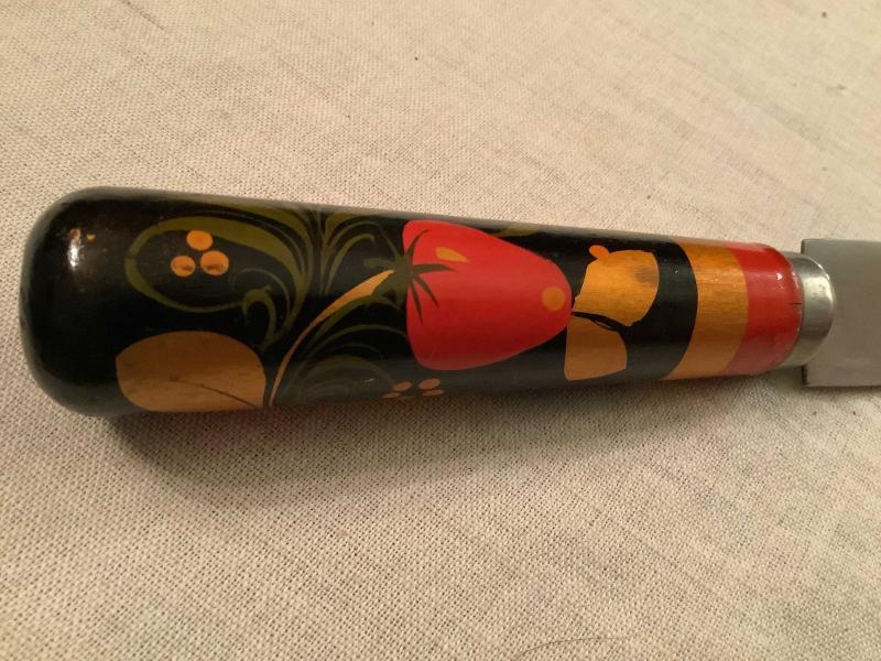 SOVYET DÖNEMİ DAMGALI AHŞAP İŞLEMELİ SAPLI BIÇAK başlıklı antika/koleksiyon objesi Rusya menşe’lidir. 1980-1999 arası dönemine aittir.