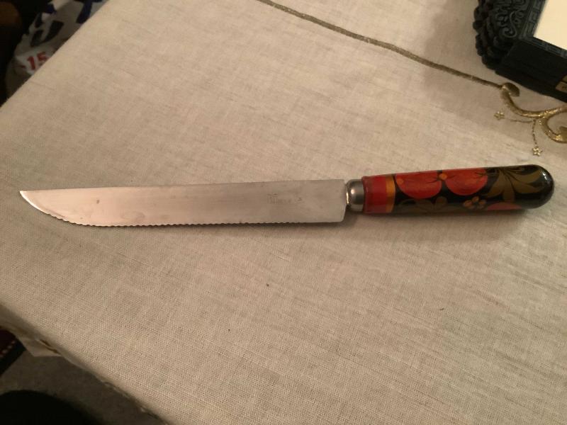 SOVYET DÖNEMİ EL İŞLEME AHŞAP SAPLI BIÇAK başlıklı antika/koleksiyon objesi Rusya menşe’lidir. 1960-1979 arası dönemine aittir.