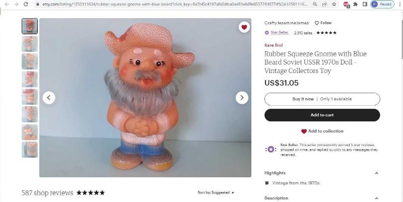 SOVYET RUSYA 1980'LERDEN ÇOK SEVİMLİ KAUÇUK (LASTİK) ORMAN CÜCESİ OYUNCAK. YERDEN YÜKSEKLİĞİ 20 CM. HİÇBİR HASARA SAHİP DEĞİL, YIRTIĞI YOK. KAFASI 360 DERECE DÖNEBİLİR. SON FOTO (8. FOTO) BU İLANDAKİ ÜRÜNE AİT DEĞİLDİR; ÖRNEK OLARAK FİKİR VERMESİ AMAÇLI, ÜRÜNÜN AYNI MARKA/ORJİN VE YAPIM YILI BENZERİNİN İNTERNETTEKİ YURTDIŞI SİTELERİNDEN ALINMIŞ RESMİDİR.