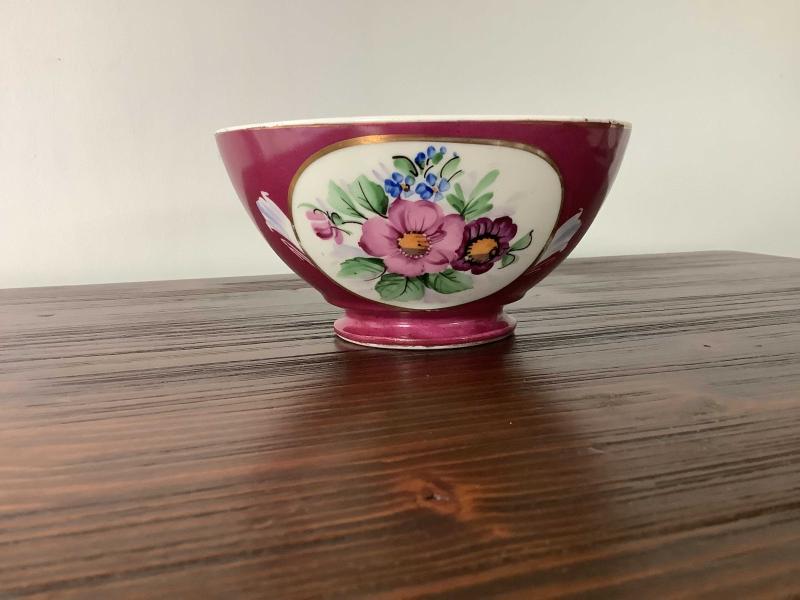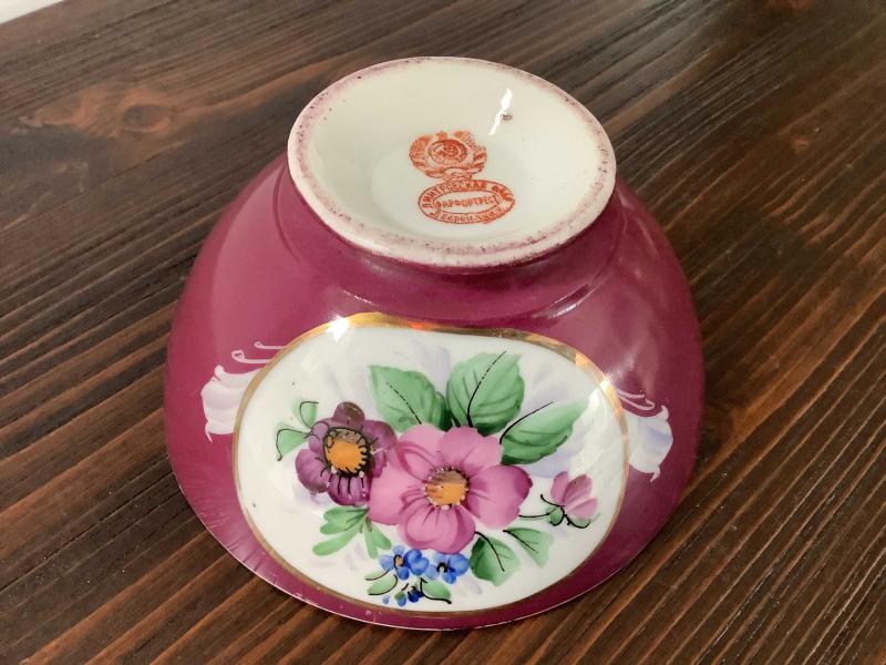 Sovyet Rusya Kuznetsov fabrikası üretimi… Çap 12 cm Yükseklik 7 cm Ağız kısmında fotoğrafta görülen atık var El boyama