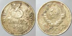SOVYETLER BİRLİĞİ 3 KAPİK 1941 STALİN DÖNEMİ. CCCP SSCB RUSYA ORAK ÇEKİÇ.