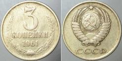 SOVYETLER BİRLİĞİ 3 KAPİK 1961. KRUŞÇEV DÖNEMİ. CCCP RUSYA ORAK ÇEKİÇ. 22 mm ÇAPINDA.