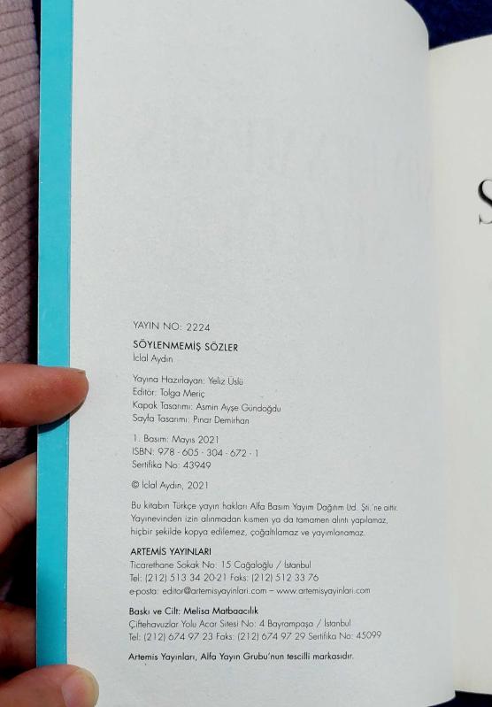 SÖYLENMEMİŞ SÖZLER İCLAL AYDIN ARTEMİS YAYINLARI 1. BASKI / MAYIS 2021 413 SAYFA ÇOK İYİ DURUMDADIR. 2. EL KİTAP