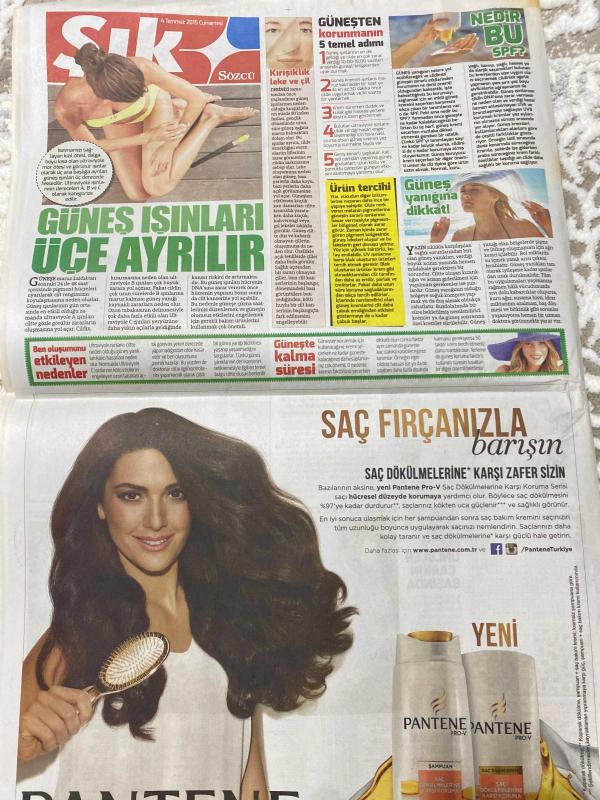 SÖZCÜ ŞIK GAZETESİ DOĞUM GÜNÜ HEDİYESİ- 4 TEMMUZ 2015 -Zuhal Olcay-Selçuk Yöntem-Esra Koç-Mustafa Koç-Nadire Koç-Ali Sunal-Mehmet Sunal-Mehmet Ali Erbil-Tarkan Abdullahoğlu-Tuğba Özay-Duygu Özay-Cem Uzan-Fanny Blanchelande-Süreyya Yalçın-Oleg Cassini-Mustafa Koç-Sadri Alışık-Demet Cengiz-Ayşe Arman-Ünal Demirkaya-Ayşegül Sarıtaş-Cemal Reşit Rey-Ebru Reber-Fikret Kuşkan-Özgü Namal-Cengiz Bozkurt-Nebahat Çehre-Ümit Kantarcılar-Hatice Aslan-Ayşegül Cengiz-Dilşat Gülcan-Nevra Serezli-Aliye Uzunatağan-Erdal Özyağcılar-Mehmet Ali Erbil-Mazhar Alanson Sultan’ın Prensi- Albüm Tartışmasına Karıştı-Güneş Gözlüğüyle Mutfağa Girdi-Anneye mi benziyor babaya mı-Kemal Sunal’a anma-Taktik Savaşları-Harika Bir Festivaldi-Ablası Gibi-Cani Şıklığınla Öne Geldi-Sevgilisi ve oğluyla tatilde-Cem Uzan’ın eşi İstanbul’a geldi-Ailece Mavi Yolculuk-Boğaz yeniden başrolde-Yaşamak da güzel yaşatmak da-Türk Çağdaşlardan Berlin çıkarması-Güneş ışınları üçe ayrılır-Kırışıklık leke ve cilt-Güneşten korunmanın 5 teme adlı eser Türkçe dilindedir. Eserin içeriğinde Türkçe dilinde bölümlere de yer verilmektedir.