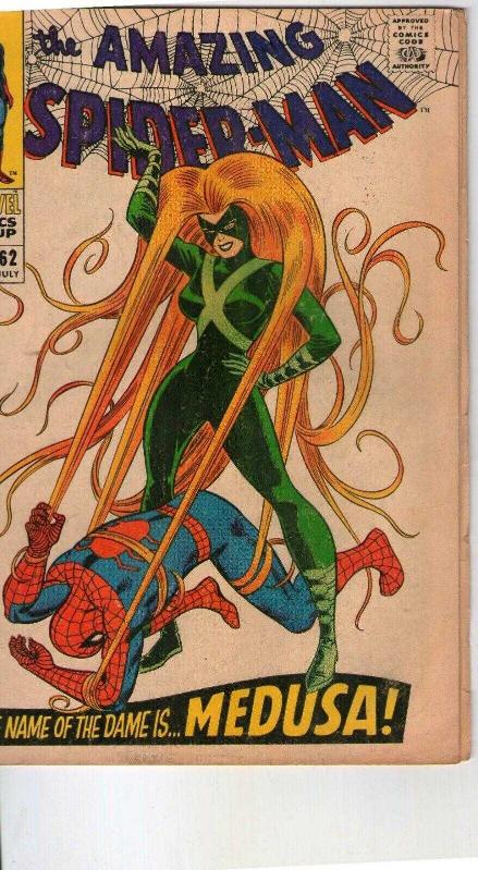SPIDER-MAN MEDUSA 1968 COMICS... Amazing Spider-Man #62 Classic John Romita Medusa Cover Marvel 1968 NM..... adlı eser, Kitap > Çizgi Roman > Yabancı kategorisinde İkinci El olarak satıştadır.