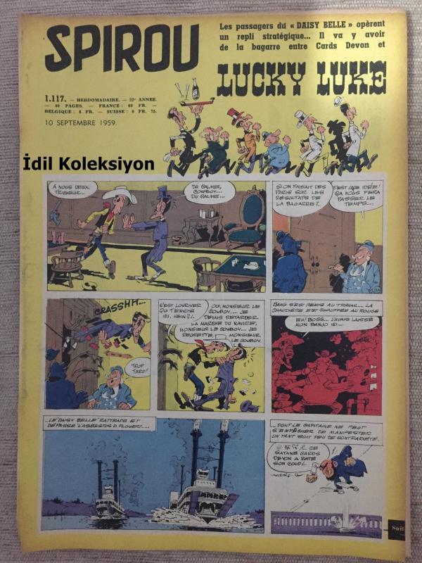 SPİROU - 10 Septembre 1959 - Vintage Cartoon Magazine - Fransızca Dergi - (Lucky Luke - Buck Danny - Sandy - Les 7 Fontaines - Une Nouvelle Aventure De La Patrouille Des Castors - Une Aventure De Luce et Tilly - Le Cavalier Sans Visage - Foucauld Conquerant Pacifique - Les Mangeurs de Citron - Un Avion Pour M. Finch - Gil Jourdan - Les Belles Histoires De L'Oncle Paul - Z Comme Zorglub) )