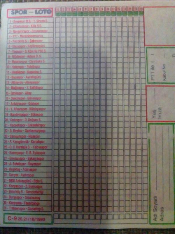SPOR LOTO 1990 OYNANMAMIŞ, 3 yıl önce satışa sunulmuştur.