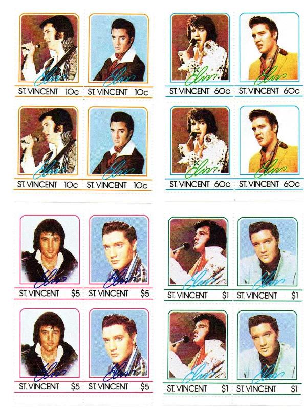 ST. Vincent Ülkesi 1987 yılı Elvis Presley MNH Dörtlü Blok Tam Set Pul (6x8.5 cm x4 ), 1 yıl önce satışa sunulmuştur.