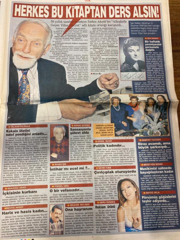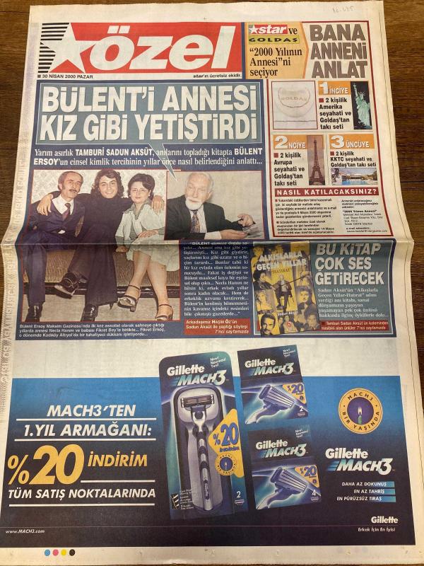 STAR ÖZEL GAZETESİ DOĞUM GÜNÜ HEDİYESİ - 30 NİSAN 2000 -TAM TAKIM 8 SAYFADIR -Bülent Ersoy-Sadun Aksüt-Ferdi Özbeğen-Maksim Gazinosu-Mehmet Hazer-Selahattin Pınar-Muazzez Abacı-Bediye Aksoy-Adnan Şenses-Ayhan Işık-Yüksel Uzel-İbrahim Tatlıses-Perihan Altındağ Sözeri-Müzeyyen Senar-Safiye Ayla-Zeki Müren-Gönül Yazar-Hamiyet Yüceses-Sevim Tuna-Ebru Gündeş-Hüseyin Örs Bülent’i annesi kız gibi yetiştirdi-Bana anneni anlat-Herkes bu kitaptan ders alsın-Bu kitap çok ses getirecek-Kokain illetini nasıl yendiğini anlattı-İçkisinin kurbanı-Haris ve hasis kadın-Sansasyonla şöhret oldu-İntihar mı ecel mi-O bir vefasızdır-Ona hayranım-Politik kadındır-Biraz avamdır ama büyük şarkıcıydı-Müziğimizi sahnede bayağılaştıran kadın-Çırılçıplak oturuyordu-Reklam ürünü-Pörsümüş göğüslerini teşhir ediyordu-Bir haftalık yevmiyesini personele dağıttı-Cengiz Aytmatov-Hülya Avşar-Marie Gillain-Ahmet Uğurlu-Müjde Ar-Macit Koper-Füsun Demirel-Yılmaz Zafer-Houston-James McCann-Danny Aiello-Anthony Quinn-Mimi Roge, Cem Uzan tarafından kaleme alınmıştır. STAR ÖZEL GAZETESİ DOĞUM GÜNÜ HEDİYESİ - 30 NİSAN 2000 -TAM TAKIM 8 SAYFADIR -Bülent Ersoy-Sadun Aksüt-Ferdi Özbeğen-Maksim Gazinosu-Mehmet Hazer-Selahattin Pınar-Muazzez Abacı-Bediye Aksoy-Adnan Şenses-Ayhan Işık-Yüksel Uzel-İbrahim Tatlıses-Perihan Altındağ Sözeri-Müzeyyen Senar-Safiye Ayla-Zeki Müren-Gönül Yazar-Hamiyet Yüceses-Sevim Tuna-Ebru Gündeş-Hüseyin Örs Bülent’i annesi kız gibi yetiştirdi-Bana anneni anlat-Herkes bu kitaptan ders alsın-Bu kitap çok ses getirecek-Kokain illetini nasıl yendiğini anlattı-İçkisinin kurbanı-Haris ve hasis kadın-Sansasyonla şöhret oldu-İntihar mı ecel mi-O bir vefasızdır-Ona hayranım-Politik kadındır-Biraz avamdır ama büyük şarkıcıydı-Müziğimizi sahnede bayağılaştıran kadın-Çırılçıplak oturuyordu-Reklam ürünü-Pörsümüş göğüslerini teşhir ediyordu-Bir haftalık yevmiyesini personele dağıttı-Cengiz Aytmatov-Hülya Avşar-Marie Gillain-Ahmet Uğurlu-Müjde Ar-Macit Koper-Füsun Demirel-Yılmaz Zafer-Houston-James McCann-Danny Aiello-Anthony Quinn-Mimi Roge adlı eser Türkçe dilindedir.