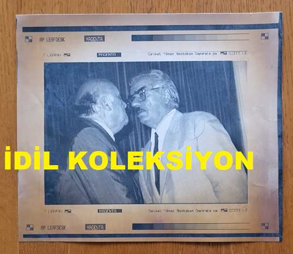 SÜLEYMAN DEMİREL ve ŞEVKET YILMAZ'IN HABER METİNLİ AJANS-BASIN FOTOĞRAFI (KAĞIT BASKI) - 21 x 18 cm EBADINDA - BAŞBAKAN SÜLEYMAN DEMİREL, ŞEVKET YILMAZ'LA TOKALAŞIRKEN ÇEKİLMİŞ BİR KARE. 1992, 15 gün önce satışa sunulmuştur.