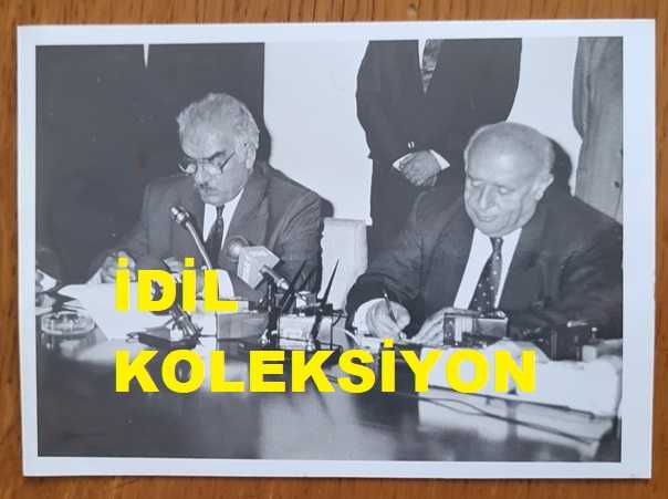 SÜLEYMAN DEMİREL ve ŞEVKET YILMAZ'IN ORİJİNAL FOTOĞRAFI - 12 x 8,5 cm EBADINDA - TÜRK-İŞ GENEL BAŞKANI ŞEVKET YILMAZ, SÜLEYMAN DEMİREL'LE BİRLİKTE BASIN KARŞISINDA İMZA ATARKEN ÇEKİLMİŞ BİR KARE, en son 2 ay önce güncellenmiştir.