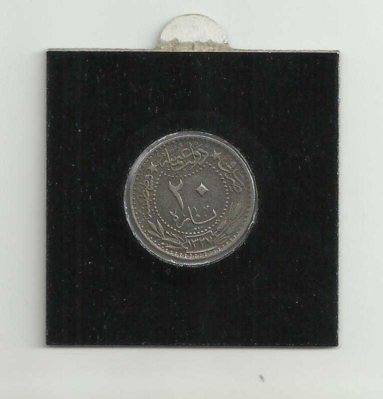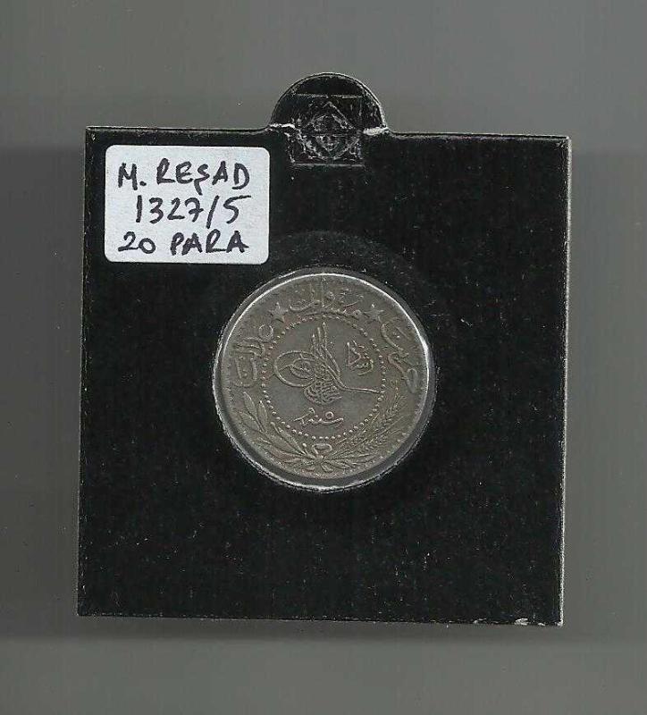 ** SULTAN 5.MEHMED REŞAT DÖNEMİ 20 PARA 1327/5 OSMANLI NİKEL PARA ** Çok temiz durumda,orijinal Lechtrum muhafazası içerisinde, sene 6,nikel 20 para 1327/5 Osmanlı para...
