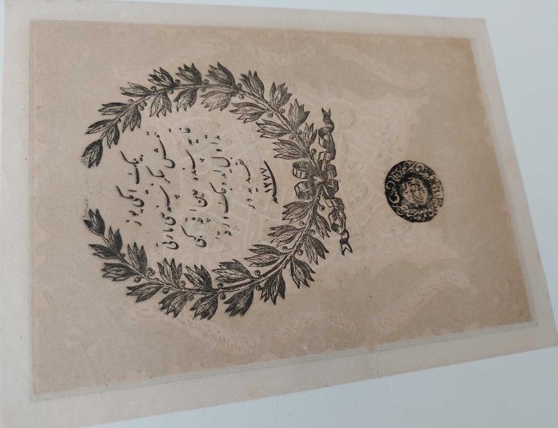SULTAN ABDÜLAZİZ 1277(1861) MEHMET TEVFİK MÜHÜRLÜ ORİJİNAL 50 KURUŞ(KAİME) ÇİL KAĞIT PARADIR. ÇİÇEKLİ OLUP 5 SATIRDIR. EBATI;132X182MM DİR. KATALOK DEĞERİ;1000 DOLARDIR. ÇOK NADİR ÜRÜNLERDENDİR. KESİNLİKLE ORİJİNAL OLUP NATÜRELDİR. YANİ İŞLEMSİZDİR. RESMİNİ GÖRDÜĞÜNÜZ ÜRÜN AYNEN GÖNDERİLİR. TÜM ÜRÜNLERİMİZE BAKMANIZ MENFAATİNİZEDİR. SAYGILARIMIZLA.