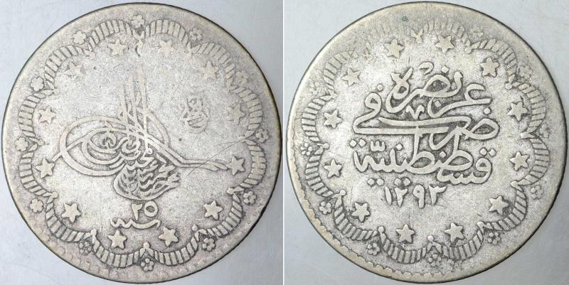 SULTAN II. ABDÜLHAMİD GÜMÜŞ 5 KURUŞ 1293/25. 13.000 ADET BASILMIŞTIR. RR NADİR., 27 gün önce satışa sunulmuştur.