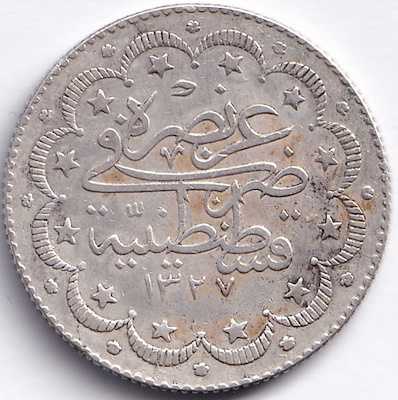 SULTAN MEHMET REŞAT HAN DÖNEMİ GÜMÜŞ NADİR R 10 KURUŞ 1327/2 CÜLUS