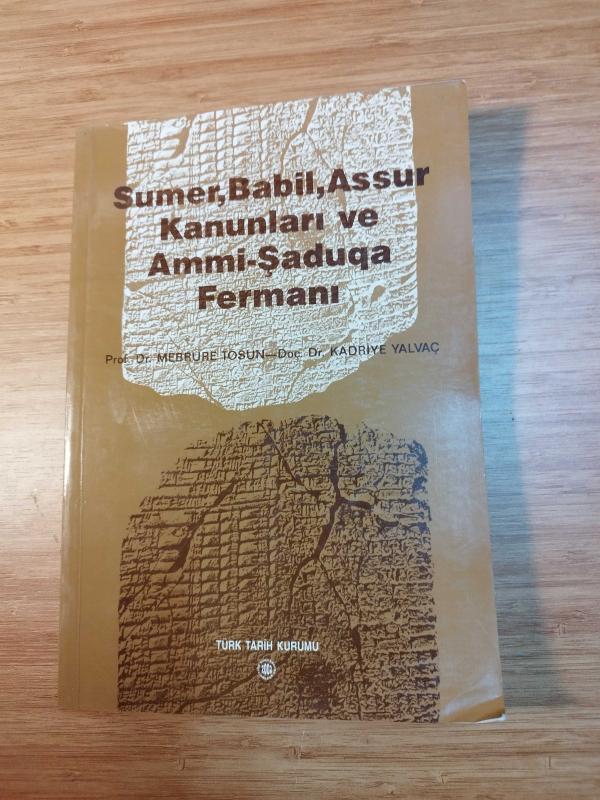 SÜMER, BABİL, ASSUR KANUNLARI VE AMMİ-ŞADUQA FERMANI, MEBRURE TOSUN - KADRİYE YALVAÇ tarafından kaleme alınmıştır. Kitap 2002 yılında TÜRK TARİH KURUMU tarafından [ANKARA] yayınlanmıştır. 327 sayfadır. SÜMER, BABİL, ASSUR KANUNLARI VE AMMİ-ŞADUQA FERMANI adlı eser Türkçe dilindedir.