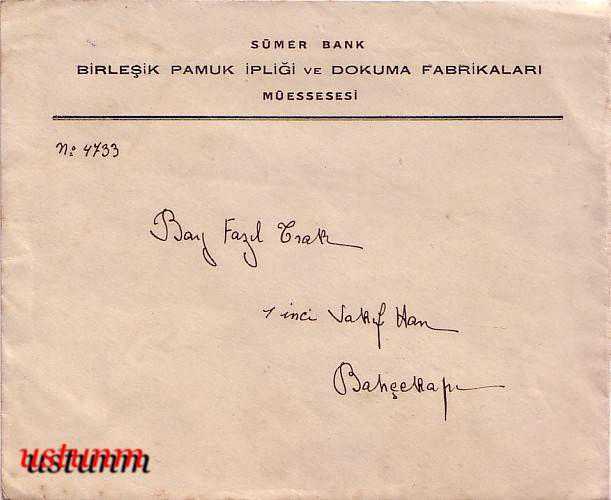 SÜMERBANK BİRLEŞİK PAMUK İPLİĞİ VE DOKUMA FABRİKALARI ANTETLİ ESKİ ZARF...., en son 3 ay önce güncellenmiştir.