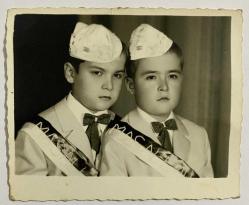 SÜNNET DÜĞÜNLERİNDE BEYAZ ŞAPKA TAKAN VE BEYAZ CEKET GİYEN 9-10 YAŞLARINDA 2 ERKEK ÇOCUĞU FOTOĞRAFI- ORİJİNAL SİYAH & BEYAZ, 8X 6cm EBADINDA - 1940'LAR, 1950'LER, 1960'LAR ve 1970'LER TÜRKİYE'SİNDEN NOSTALJİK DOĞUM GÜNÜ HEDİYESİ, en son 1 yıl önce güncellenmiştir.
