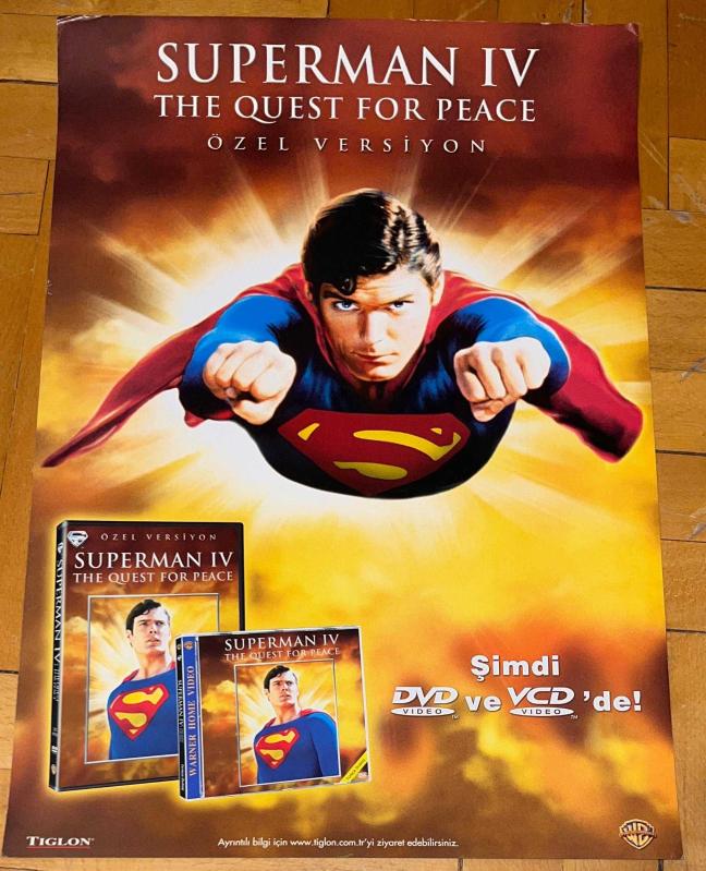 SUPERMAN IV THE QUEST FOR PEACE * CHRISTOPHER REEVE * 1987 * FİLM DVD VCD TANITIM AFİŞİ / POSTER * 34 x 48 CM, 2 yıl önce satışa sunulmuştur.