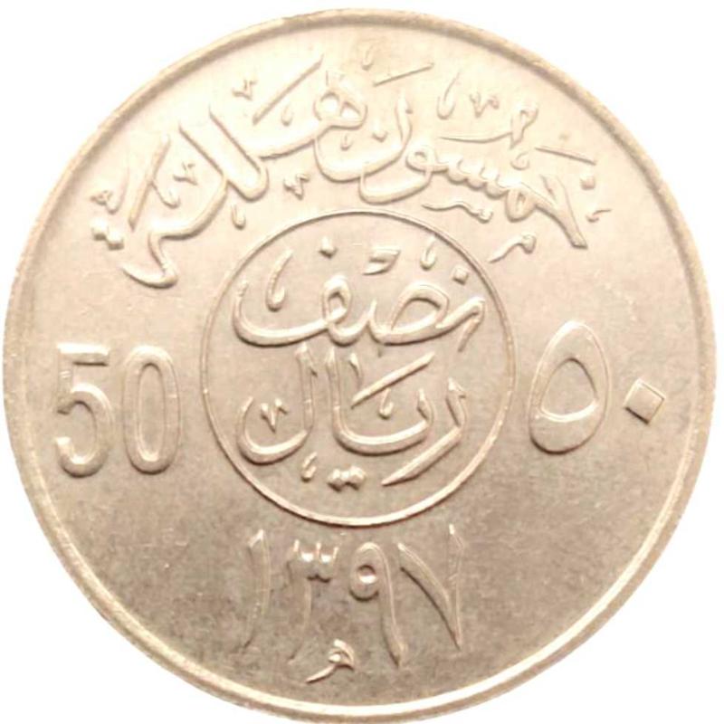 SUUDİ ARABİSTAN 50 Halala Khalid bin Abdulaziz 1397 (1977) - ١٣٩٧ Bakır-nikel alaşımı ÇÇT+ FOTOĞRAFTAKİ PARA YOLLANACAKTIR. 1