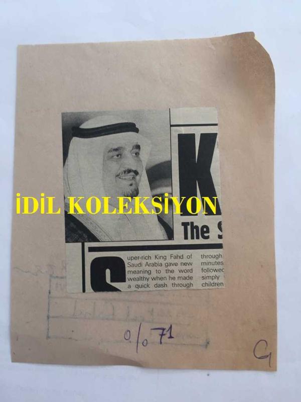SUUDİ ARABİSTAN KRALI FAHD BİN ABDÜLAZİZ'İN İNGİLİZCE GAZETEDEN KESİLME FOTOĞRAFI - 7 x 6 cm EBADINDA, 7 ay önce satışa sunulmuştur.