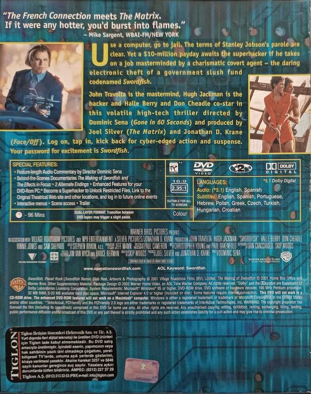SWORDFISH DVD 2.EL FİLM ORJİNAL DVD ( 11609, en son 1 yıl önce güncellenmiştir.