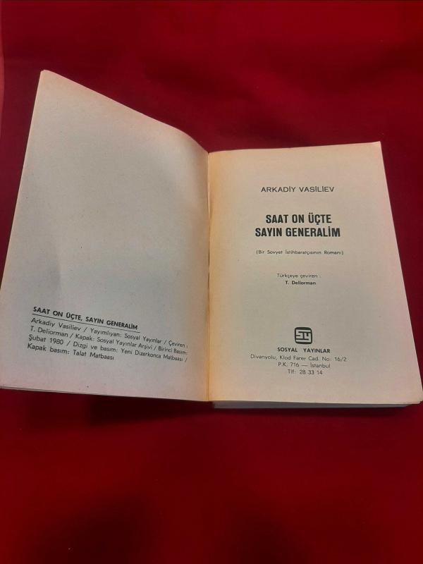 Saat onüçte sayın generalim, Arkadiy Vasiliev tarafından kaleme alınmıştır. Kitap 1980 yılında Sosyal Yayınlar tarafından yayınlanmıştır. Bu baskının çevirisi T.Deliorman tarafından yapılmıştır. 639 sayfadır. Saat onüçte sayın generalim adlı eser Türkçe dilindedir.