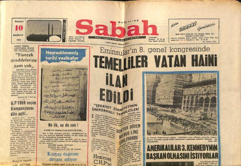 Sabah Gazetesi 10 Haziran 1968 - Kudüs İçin Müslümanlar Kutsal Savaşa Çağrıldı - Temelliler Vatan Haini İlan Edildi GZ152005, en son 19 gün önce güncellenmiştir.