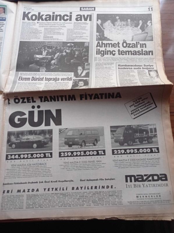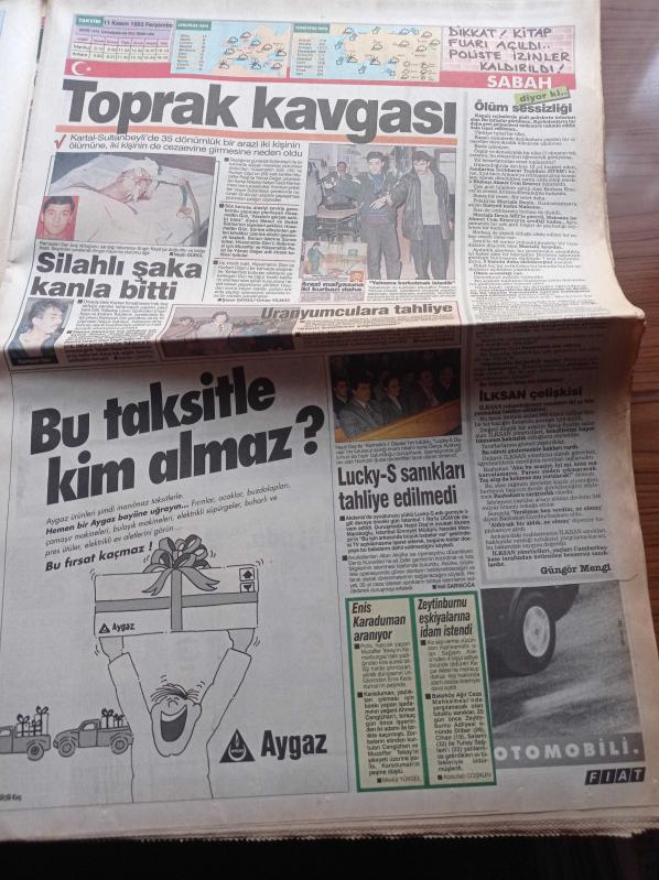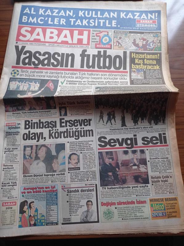 Sabah Gazetesi - 11 Kasım 1993 - Binbaşı Cem Ersever'in Olayı Kördüğüm - Önceki Gün İntihar Eden Ekrem Dürüst Toprağa Verildi - Atatürk'e Saygılarını Sevgilerini Belirtmek İçin Yüz binlerce Kişi Anıtkabir'e Akın Etti - Terör Pahalılık Ve Zamlarla Bunalan Türk Halkı Futbolla Moral Buldu - Avrupa Türk Futbolunu Konuşuyor - Refah Partili İbrahim Halil Çelik'e Büyük Tepki - Sadettin Teksoy Serbest - Türkan Şoray adlı eser Türkçe dilindedir.