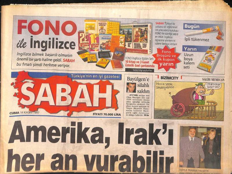 Sabah Gazetesi 14 Kasım 1997 - Saddam'ın Amerikalıları Sınır Dışı Etme Kararı Düşen Tansiyonu Tekrar Yükseltti... - Valilere İnsan Hakları Dersi ! GZ155489, en son 22 gün önce güncellenmiştir.