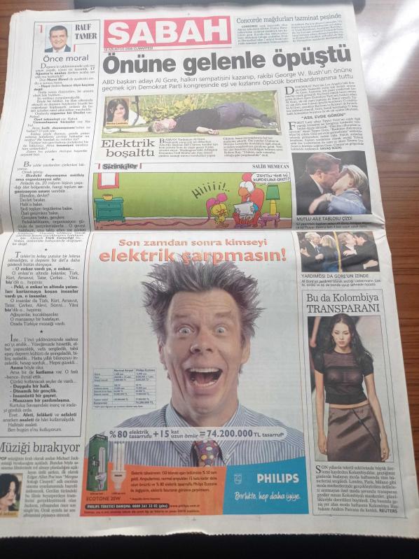 Sabah Gazetesi - 19 Ağustos 2000 - Beşiktaşlı Şifo Mehmet'e Çirkin Saldırı - Belçika Sokaklarında Fehriye Erdal Yasağı - Yeğen Murat Demirel İfade Verdi - MHP Trabzon Vekili Orhan Bıçakçı İle Çıplak Manken Evren Aykul Aşkı Tam Gaz - Devlet İSDEMİR Fabrikasını Satışa Çıkardı - Karagümrük Çetesi - Süleyman Demirel İzmir'den Başlıyor adlı eser Türkçe dilindedir.