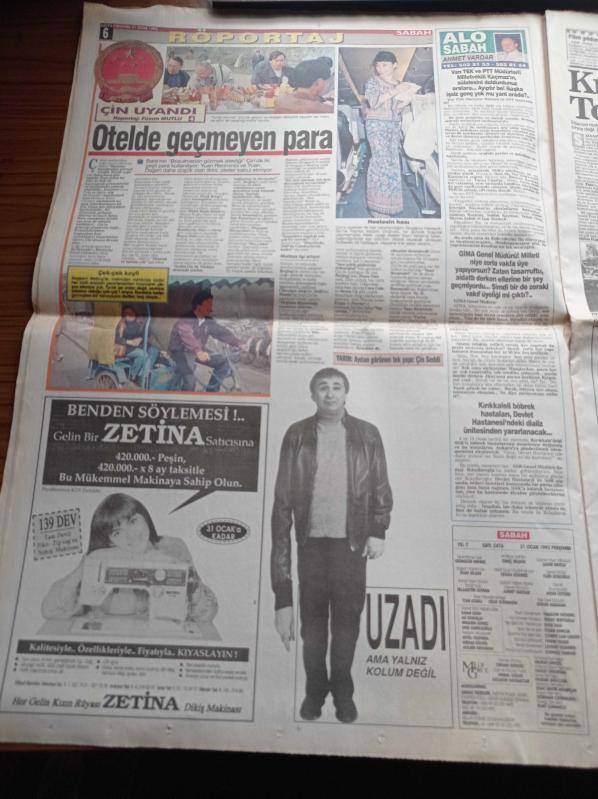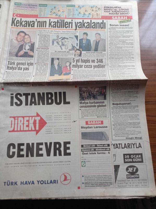 Sabah Gazetesi - 21 Ocak 1993 - Gordon Milne - Veselinoviç - Rıdvan Dilmen - Çetin Altan - Zülfü Livaneli - Cengiz Çandar - İki Eski Bakan Safa Giray Ve Cengiz Altınkaya Yüce Divan'da- Güler Sabancı'nın Dans Sovu- Sırp Zulmü Hitler'i Geçti - Abdullah Öcalan'a Göre Atatürk adlı eser Türkçe dilindedir.