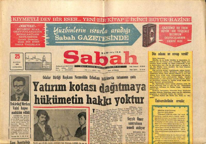 Sabah Gazetesi 25 Haziran 1969 - Türkiye'de İlk Tıp Tarihi Müzesi Kuruluyor - TÖS'çüler Yine Faaliyete Geçti GZ150096, en son 18 gün önce güncellenmiştir.