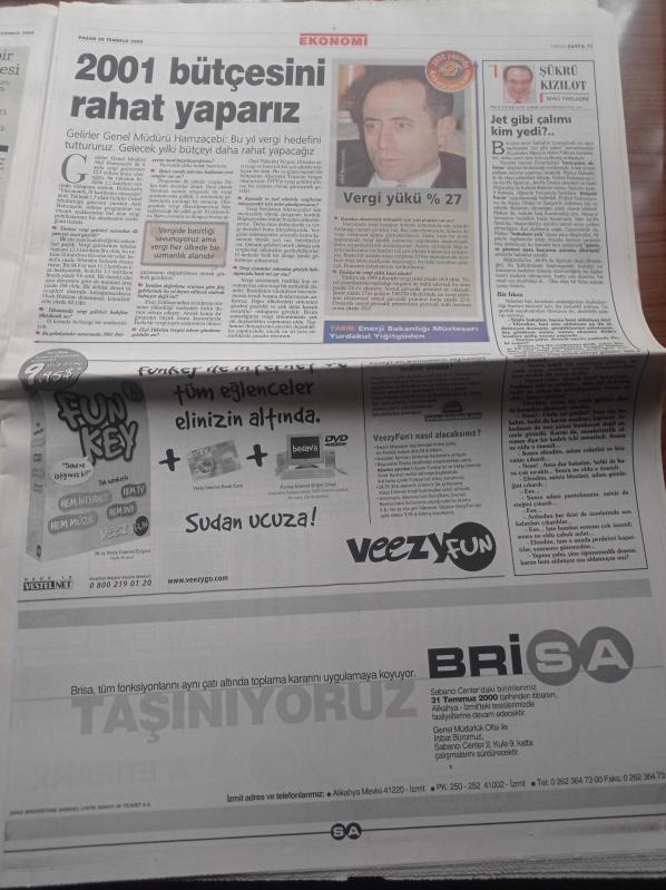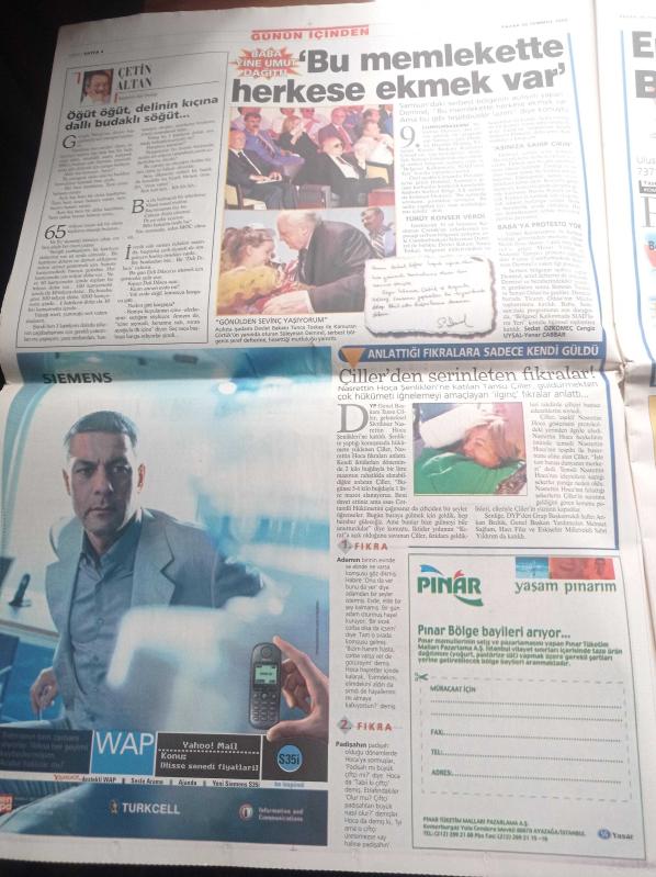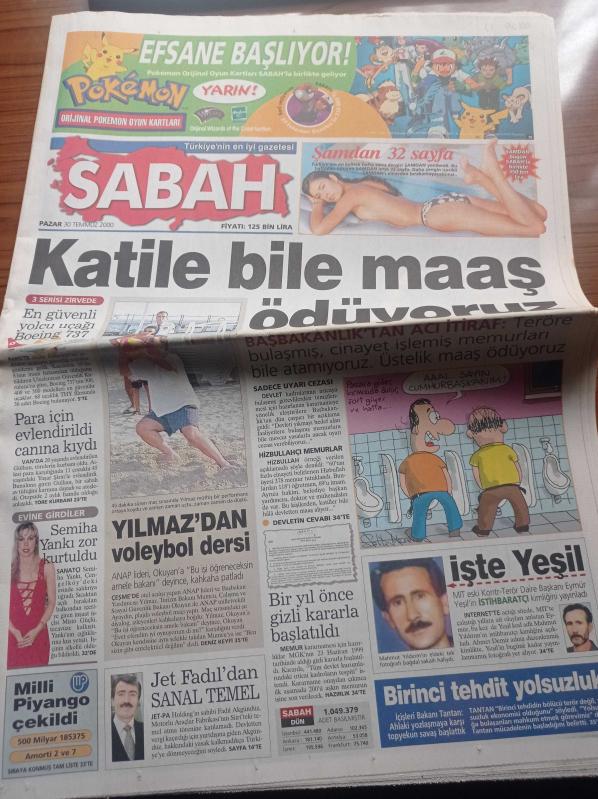 Sabah Gazetesi - 30 Temmuz 2000 - Galatasaray'a Darbe - Elvir Baliç - Mustafa Denizli - Alpay Özalan - Mit Eski Daire Başkanı Mehmet Eymür Yeşil Kod Adlı Mahmut Yıldırım'ın Kimliğini Açıkladı - Semiha Yankı Zor Kurtuldu - Jet Fadıl'dan Sanal Temel - Mesut Yılmaz'dan Voleybol Dersi Katile Bile Maaş Ödüyoruz adlı eser, Kitap > Süreli Yayınlar > Gazeteler kategorisinde İkinci El olarak satıştadır.