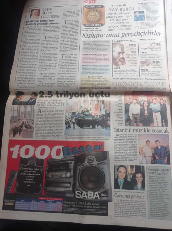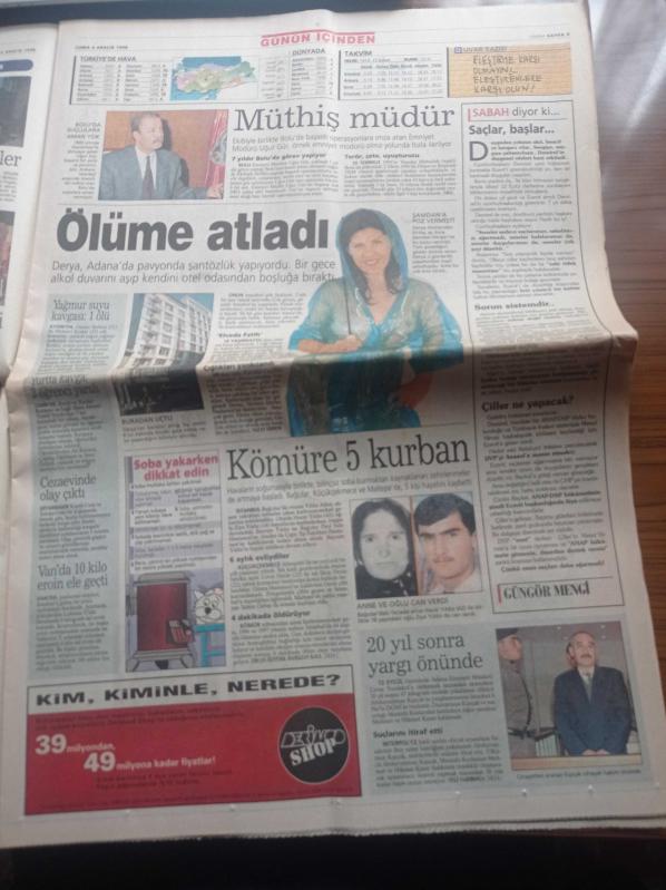 Sabah Gazetesi - 4 Aralık 1998 - Turgay Ciner Gururumu Kırdılar - Galatasaray'a Kirli Oyunlar Dün Start Aldı - Fatih Terim Hakem Çocuk Gibiydi- İtalya Abdullah Öcalan'ı Postalıyor - Sibel Can Gözaltında - Süleyman Demirel Bülent 19 Yıl Önce Nihat Erim'in Cenazesinde - Alaattin Çakıcı'ya Şartlı İade adlı eser Türkçe dilindedir.