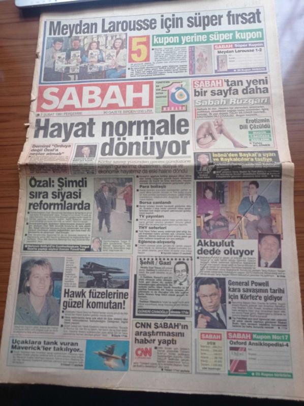 Sabah Gazetesi - 7 Şubat 1991 - Adnan Hoca'nın Amacı Reklam - Adnan Oktar - Tam Teşekküllü Hayvan Hastanesi - Her Yönüyle Barış Manço Saçı Uzun Aklı Uzun Yazı Dizisi - Basket Şov Geliyor - Zeytinburnu Fenerbahçe Bizi Küçümsemesin - Turgut Özal Sıra Şimdi Siyasi Reformlarda - Başbakan Yıldırım Akbulut Dede Oluyor - Hawk Füzelerine Güzel Komutan - Körfez Savaşı adlı eser Türkçe dilindedir.