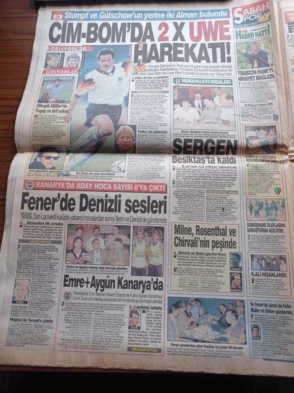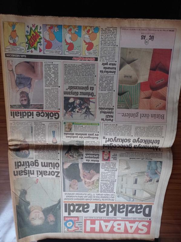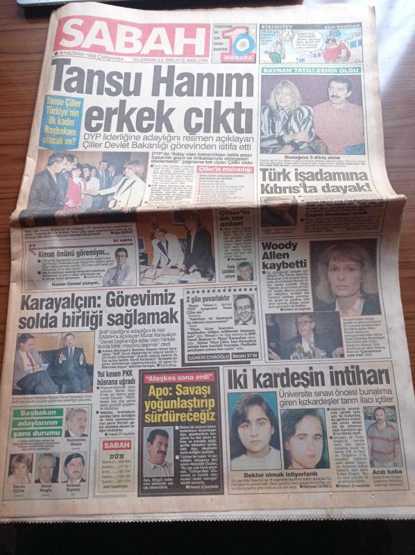 Sabah Gazetesi - 9 Haziran 1993 - Sergen Yalçın Beşiktaş'ta Kaldı - Emre Aşık Fenerbahçe'ye İmza Attı - Cemil Turan - Woody Allen Kaybetti - Ateşkes Sona Erdi - Abdullah Öcalan Savaşı Yoğunlaştırıp Sürdüreceğiz- Tansu Çiller Erkek Çıktı - Tansu Çiller Türkiye'nin İlk Kadın Başbakanı Olacak Mı - Murat Karayalçın adlı eser Türkçe dilindedir.