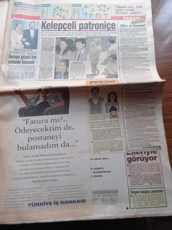 Sabah Gazetesi - 9 Haziran 1993 - Sergen Yalçın Beşiktaş'ta Kaldı - Emre Aşık Fenerbahçe'ye İmza Attı - Cemil Turan - Woody Allen Kaybetti - Ateşkes Sona Erdi - Abdullah Öcalan Savaşı Yoğunlaştırıp Sürdüreceğiz- Tansu Çiller Erkek Çıktı - Tansu Çiller Türkiye'nin İlk Kadın Başbakanı Olacak Mı - Murat Karayalçın adlı eser, Kitap > Süreli Yayınlar > Gazeteler kategorisinde İkinci El olarak satıştadır.
