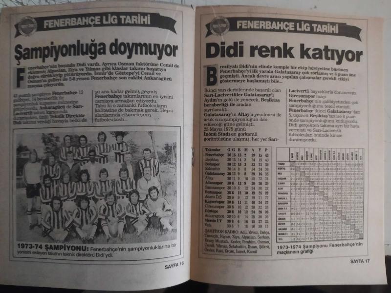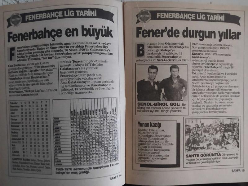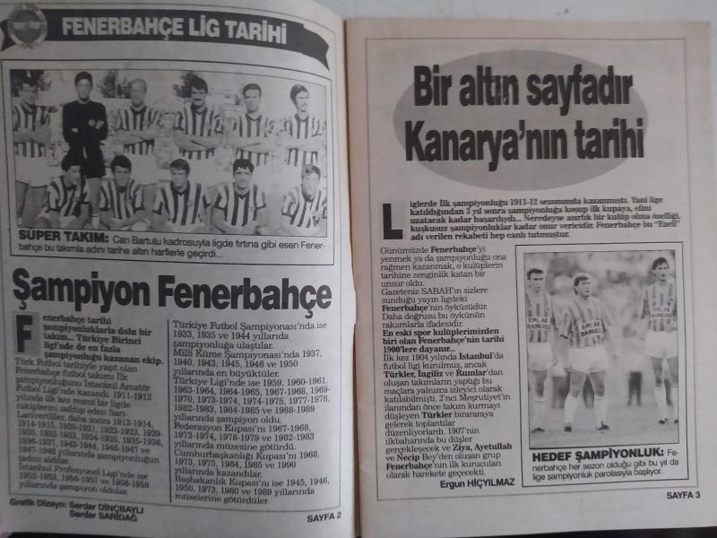 Sabah Gazetesi Fenerbahçe Sarı Kanaryalar 34 Yıllık Lig Tarihi - Fenerbahçe Lig Tarihi - Şampiyon Fenerbahçe - Bir altın sayfadır Kanarya'nın tarihi - Fenerbahçe kuruluyor - Ve şampiyonluk geliyor - Fener-CimBom çekişmesi - Yabancı antrenörler - Fener ilk şampiyon - Can Bartu İtalya'da - İstikrar yavaş yavaş geliyor - Şampiyonluğa doymuyor - Fener hep en önde - Birinci Lig'in yıldızı - Fener'in ayak sesleri - Fenerbahçe en büyük - Fener'de durgun yıllar - Şampiyonluğa doymuyor - Didi renk katıyor - Trabzon dönemi başlıyor - Takımı Cemil sırtladı - Fener'in gol kralları - 80-91 en kötü sezon - Ve şampiyonluk - Fener yine şampiyon - İki sene ara iyi - Schumacher geçti - Fener'in bionik adamı - Örnek bir futbolcu Aykut Kocaman - Tanju'nun olaylı transferi - Fener'in yıldızları - Futbol Takımı Kadrosu fotoğraf ve haberi - Tam Takım Dergi Yıpranma, sararmalar, kupon kesiği ve yırtılmalar zamana bağlı olarak görülebilir
