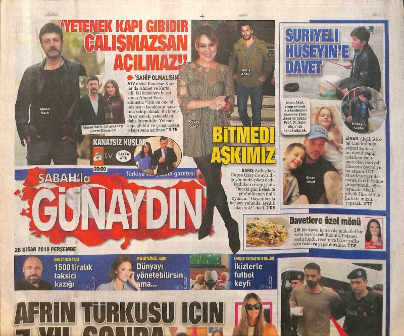 Sabah Gazetesi Günaydın Eki 26 Nisan 2018 - İbrahim Tatlıses 7 Yıl Sonra Stüdyoda - Hülya Avşar: Yaşadıklarım Zamanla Değerlenecek GZ154268, en son 20 gün önce güncellenmiştir.