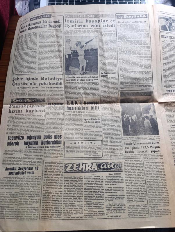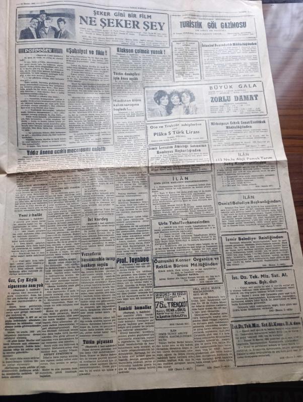 Sabah Postası Gazetesi - Turkish Newspaper - 20 Kasım 1962 - Gaz çay ve köylü sigarasına zam yok - Maliye Bakanı Ferit Melen fakir köylüden vergi alınmayacak dedi - İzmir'de klakson çalmak yasak - De Gaulle seçimlerde başarı kazandı - İzmirli hamallar Dün grev yaptılar - Hindistan ölüm kalım savaşına başladı - çocuk kitapları sergisi Fotoğrafı - İngiliz tarihçisi Toynbee Kızıl Çin büyük bir tehlikedir dedi - Yıldız Asena acıklı macerasını anlattı - Amerika uçaklarını geri çekmesi için Sovyetlere 48 saat mühlet veriyor - Zehra Abla yazan Hikmet Bozkurt Yazı Dizisi - şehir içinde belediye otobüsünün yolu kesildi - Eline ilk defa tüfek alan Miray Sözerman tecrübeli avcıları mağlup etti Fotoğrafı - Şeker gibi film ne şeker şey başrollerde Göksel Arsoy Türkan Şoray - turistik göl gazinosu şahane bir program açılıyor - Zorlu damat filmi başrolde Kadir Savun Cevat Kurtuluş köşk ve lale sinemalarında - Bytomlular 3. Tur Galatasaray'ın hakkıydı dedi - milli takımımız yarın gidiyor - Spartak, Ege Matbaacılık ve Ticaret tarafından kaleme alınmıştır. Sabah Postası Gazetesi - Turkish Newspaper - 20 Kasım 1962 - Gaz çay ve köylü sigarasına zam yok - Maliye Bakanı Ferit Melen fakir köylüden vergi alınmayacak dedi - İzmir'de klakson çalmak yasak - De Gaulle seçimlerde başarı kazandı - İzmirli hamallar Dün grev yaptılar - Hindistan ölüm kalım savaşına başladı - çocuk kitapları sergisi Fotoğrafı - İngiliz tarihçisi Toynbee Kızıl Çin büyük bir tehlikedir dedi - Yıldız Asena acıklı macerasını anlattı - Amerika uçaklarını geri çekmesi için Sovyetlere 48 saat mühlet veriyor - Zehra Abla yazan Hikmet Bozkurt Yazı Dizisi - şehir içinde belediye otobüsünün yolu kesildi - Eline ilk defa tüfek alan Miray Sözerman tecrübeli avcıları mağlup etti Fotoğrafı - Şeker gibi film ne şeker şey başrollerde Göksel Arsoy Türkan Şoray - turistik göl gazinosu şahane bir program açılıyor - Zorlu damat filmi başrolde Kadir Savun Cevat Kurtuluş köşk ve lale sinemalarında - Bytomlular 3. Tur Galatasaray'ın hakkıydı dedi - milli takımımız yarın gidiyor - Spartak adlı eser Türkçe dilindedir.