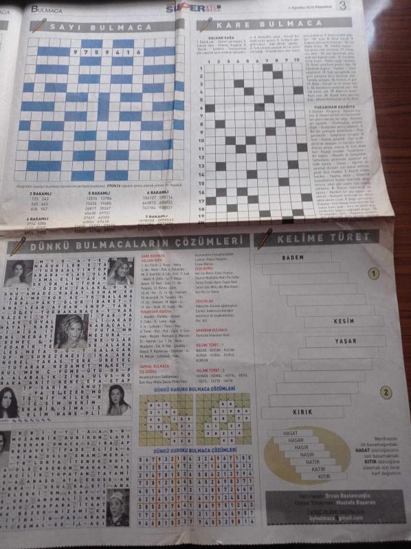 Sayfa Boyutu: 38*58 cm Sayfa Sayısı: 4 Sabah Süper Bulmaca Gazetesi Yıpranma, sararmalar, kupon kesiği ve yırtılmalar zamana bağlı olarak görülebilir